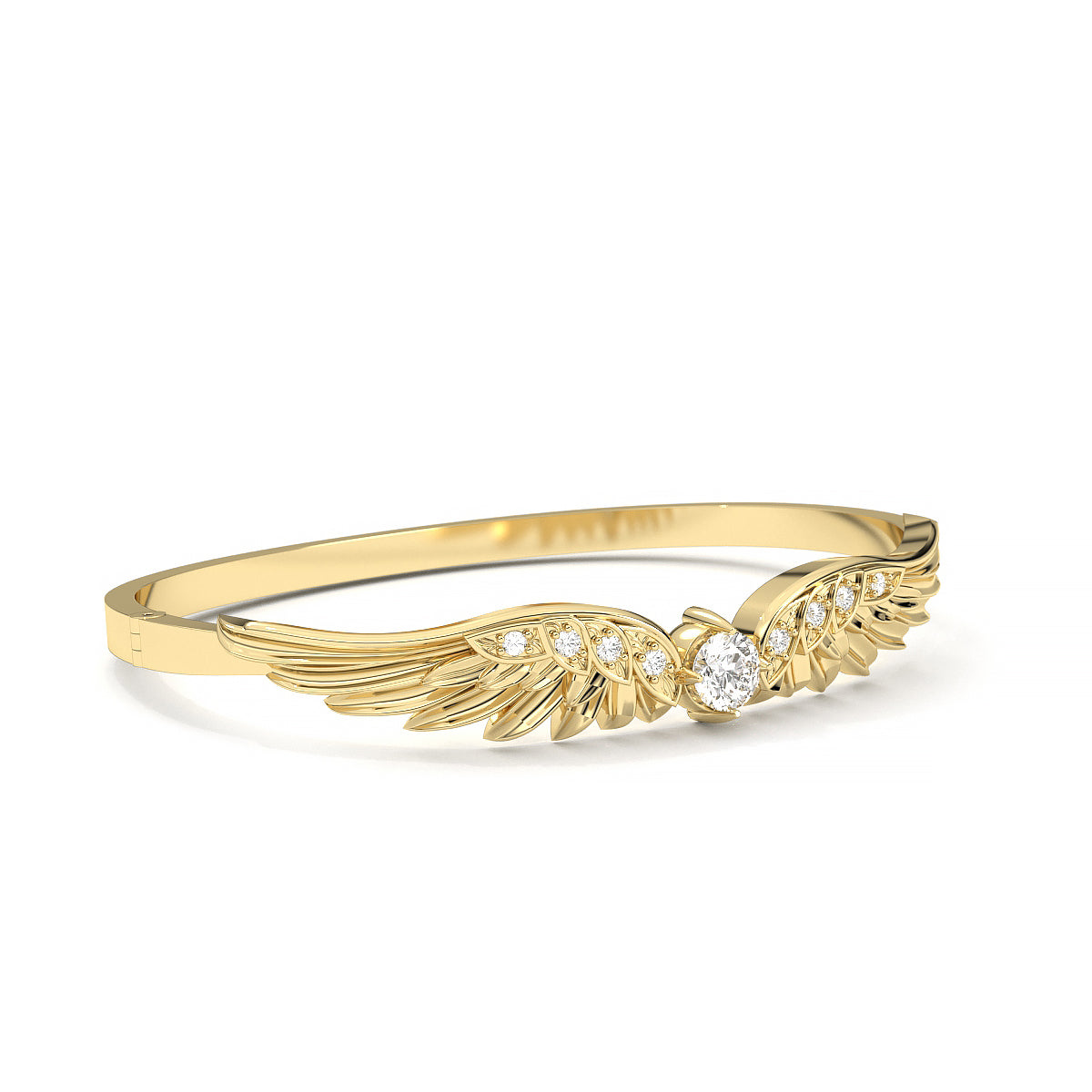 Unlock the magic within. The Angel Wing Bangle isn't just jewelry—it's a piece of a forgotten story, waiting for you to continue it. Crafted in luminous solid gold, this sculpted wing bracelet is for the modern goddess, the quiet ruler, the everyday enchantress.