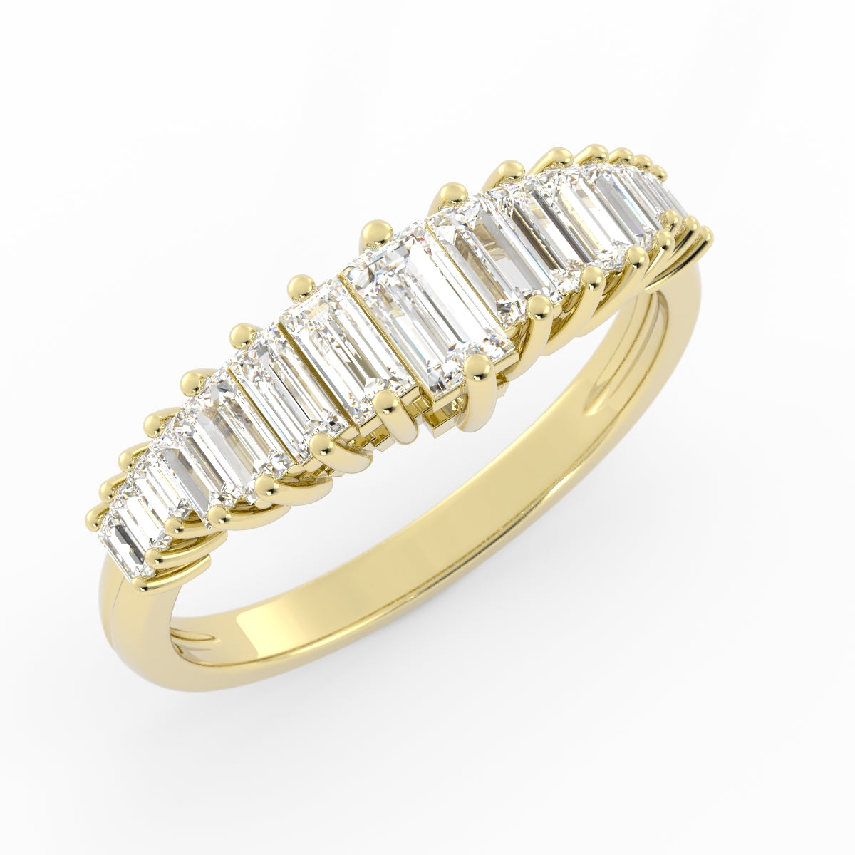 Featuring sparkling baguette-cut diamonds. Perfect as a wedding band, anniversary ring, or everyday stacker with your engagement ring.