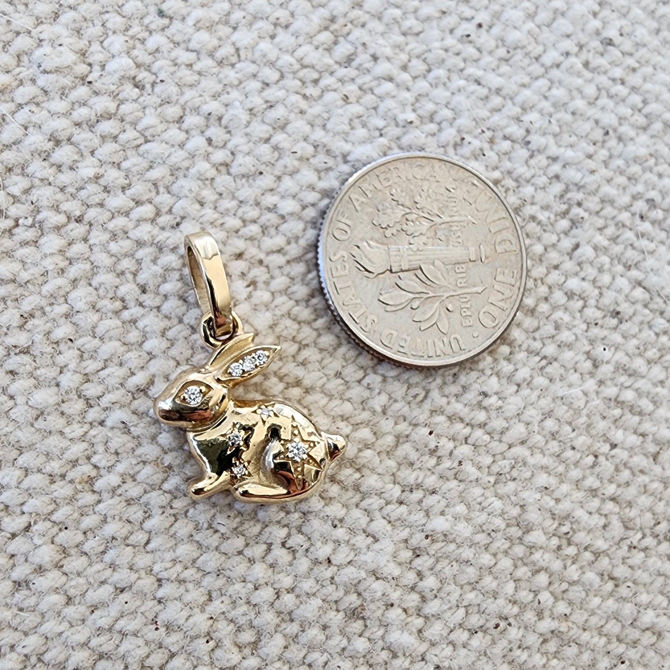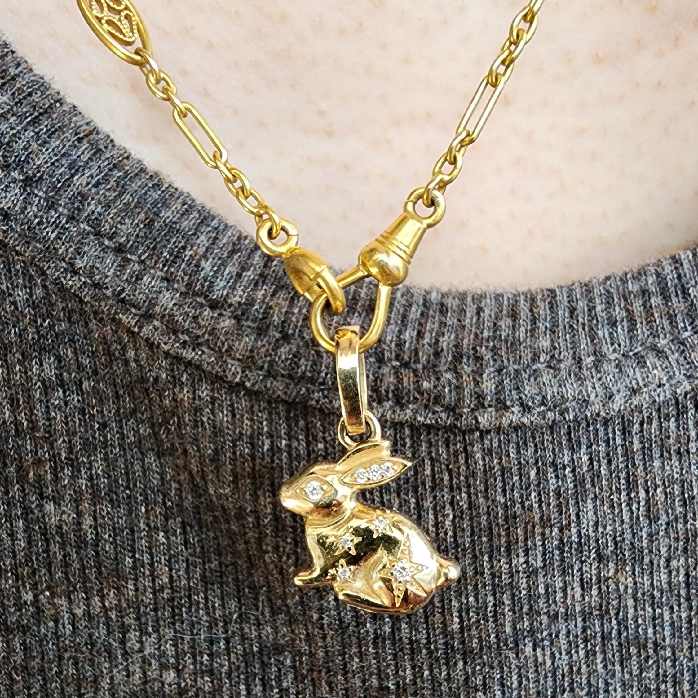Discover the enchanting Celestial Bunny Pendant, a delicate and whimsical piece of jewelry that captures the mystical beauty of the night sky. This solid double-sided pendant tells a story of magic, dreams, and celestial wonder, making it the perfect accessory for moon lovers, dreamers, and those who believe in the soft power of the cosmos. Chain shown for modeling purpose only.