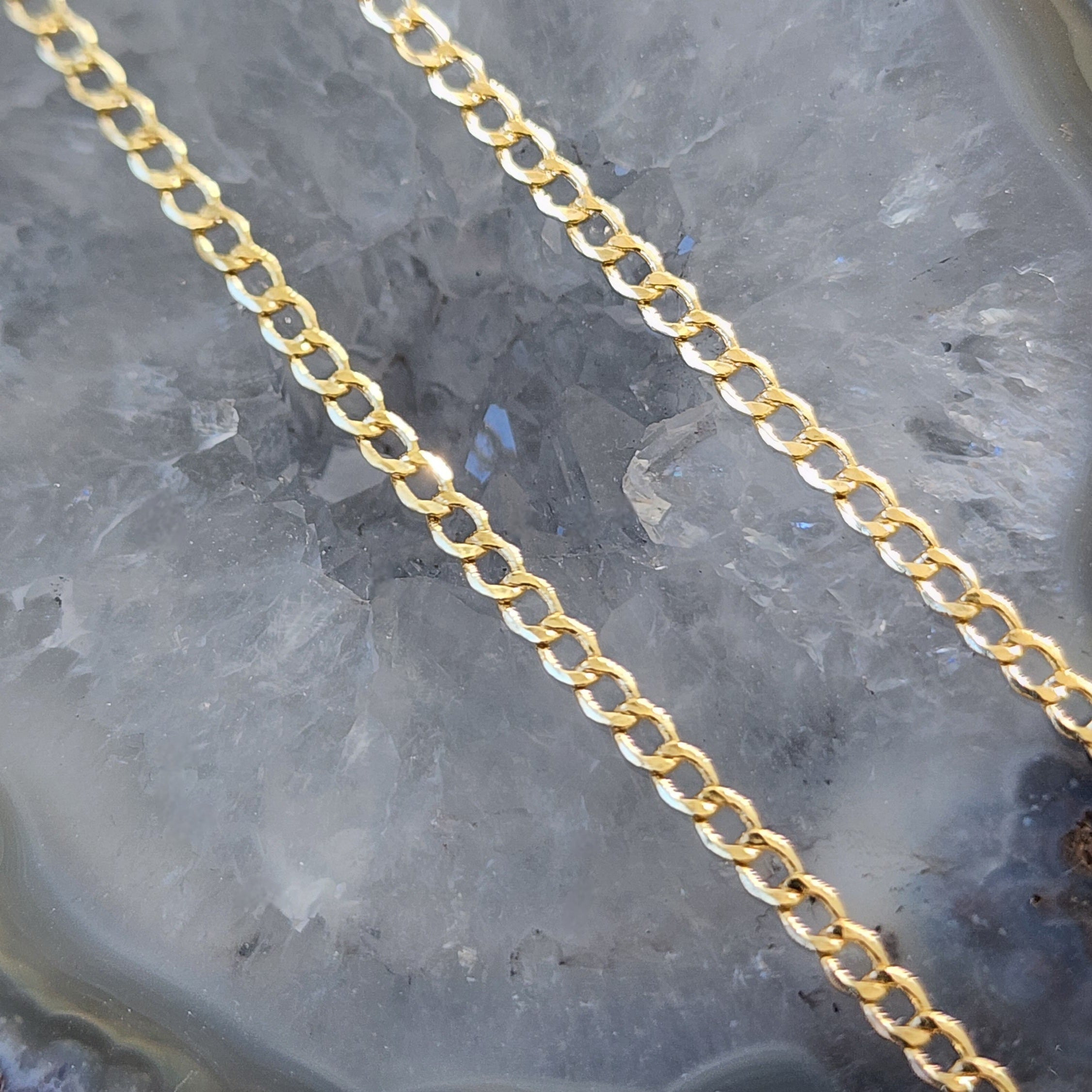 One of our most loved chains. This classic 2.25 mm curb chain with spring clasp closure is a versatile gold chain for any style and occasion. This timeless style goes with everything and makes a subtle statement on its own.