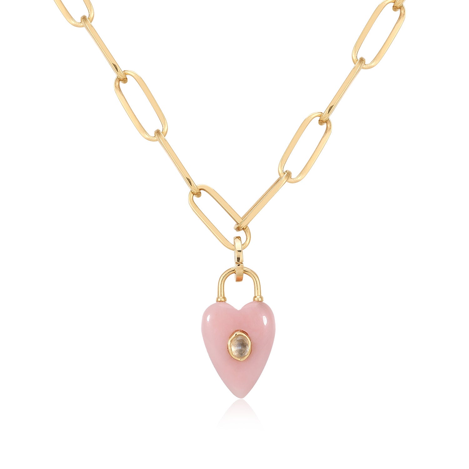 Secure your most precious sentiments in a symbol of unbreakable affection. The Love Lock Pendant artfully blends the timeless romance of a pink opal heart with the enduring strength of a padlock, creating a meaningful and modern keepsake. [chain sold separately]