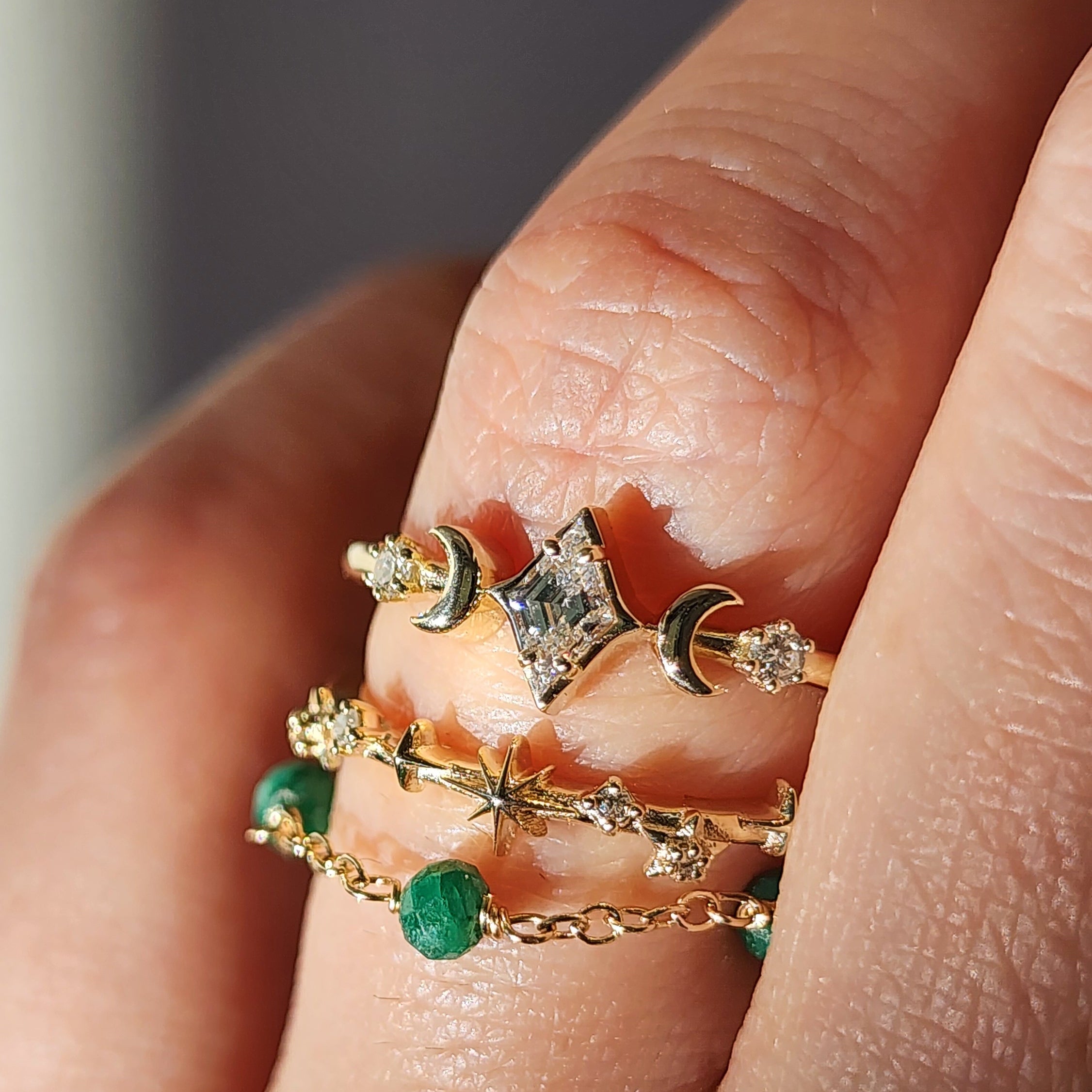 Stacked with Starry Ring and Gemstone Chain Ring, sold separately.