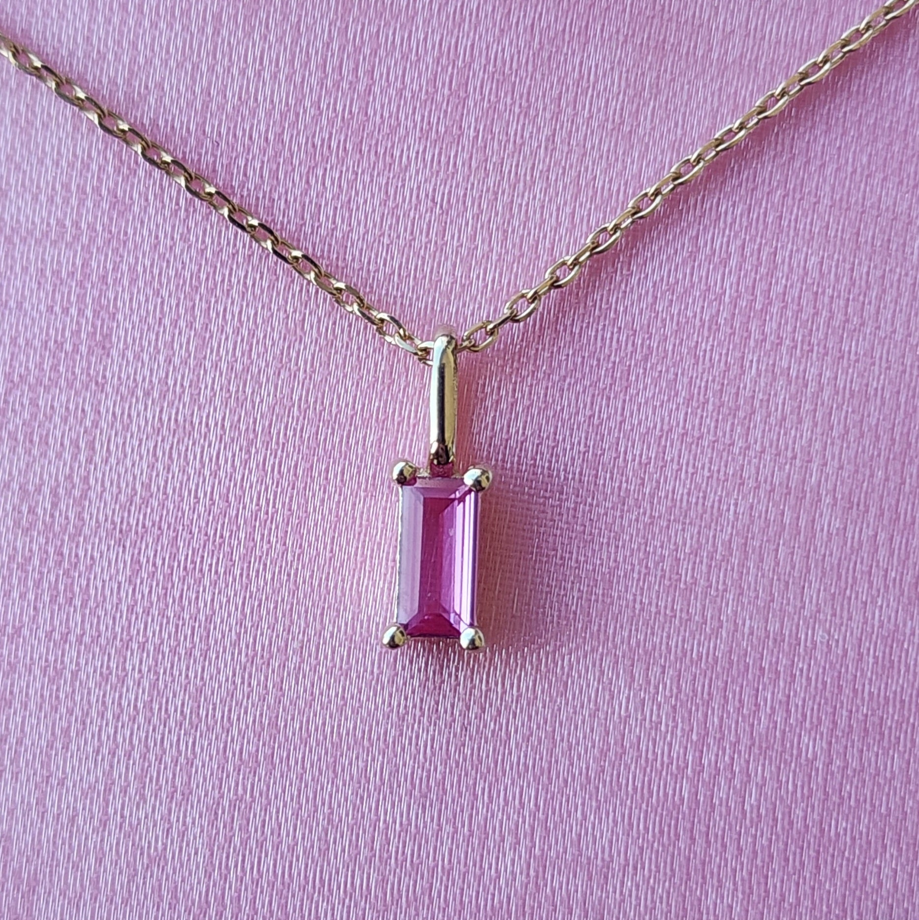 A whisper of color, a statement of delicate grace. The Blush Petal Pendant captures the soft, romantic hue of a first bloom in a sleek, modern silhouette. Centered in this elegant design is a luminous, rectangular pink sapphire, precision-cut to showcase its crystal clarity and captivating color.